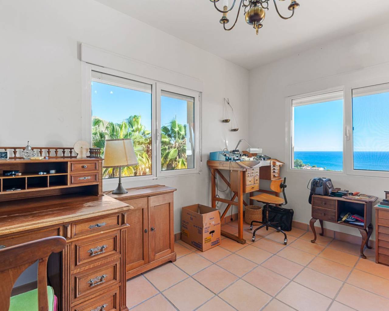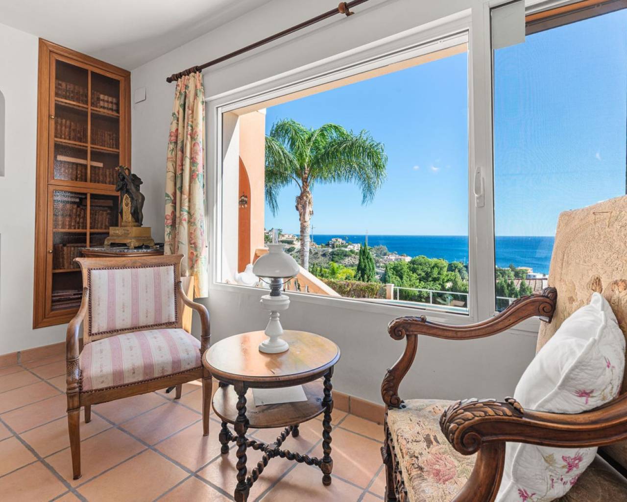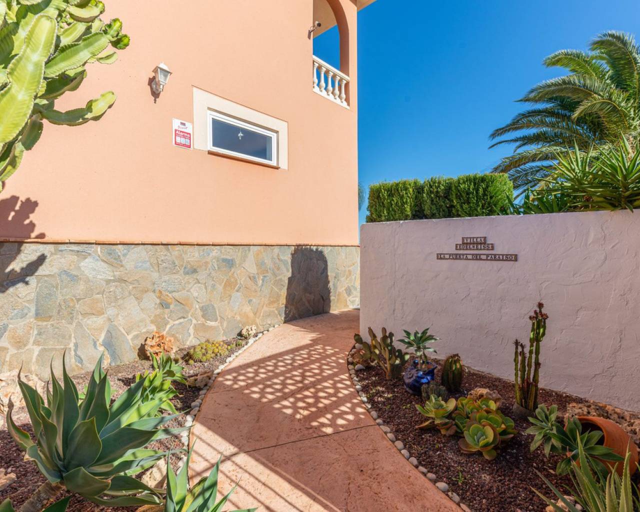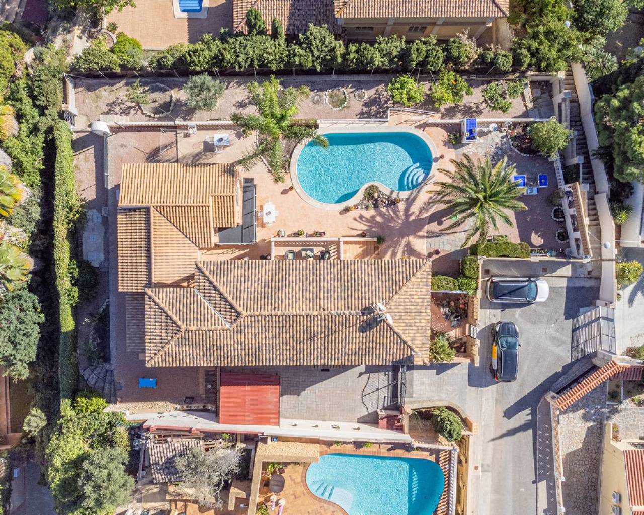 Hilltop Villa with Panoramic Sea Views – Coveta Fumá, Northern Costa Blanca Located in the sought-after area of Coveta Fumá, this stunning hilltop villa offers uninterrupted sea views, total privacy, and an exceptional Mediterranean setting. Villa Edelweiss features 268 m² on a large elevated plot—more than three times the size of the house—and enjoys a south-facing orientation for all-day sunshine. Within walking distance of Cala Piteres beach and the tram station, and just a few minutes' drive from the El Campello marina, Villajoyosa, and Bonalba golf course, Villa Edelweiss combines tranquility with excellent access to all amenities. The ground floor includes a bright living room with fireplace, dining area, fully equipped kitchen, and two double bedrooms. Upstairs, the master suite offers a spacious bathroom and study. Both floors enjoy spectacular sea views. Outside, a 42 m² swimming pool with Roman steps, a 92 m² terrace, and a mature Mediterranean garden create the perfect space for relaxing or entertaining guests. In addition, there is private parking and a workshop. A unique opportunity to acquire a south-facing detached villa with impressive sea views, just minutes from the coast and the marina.