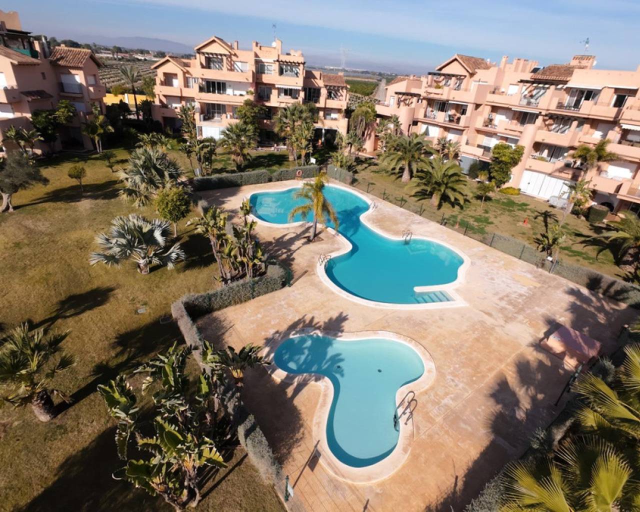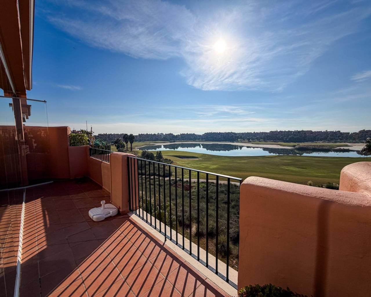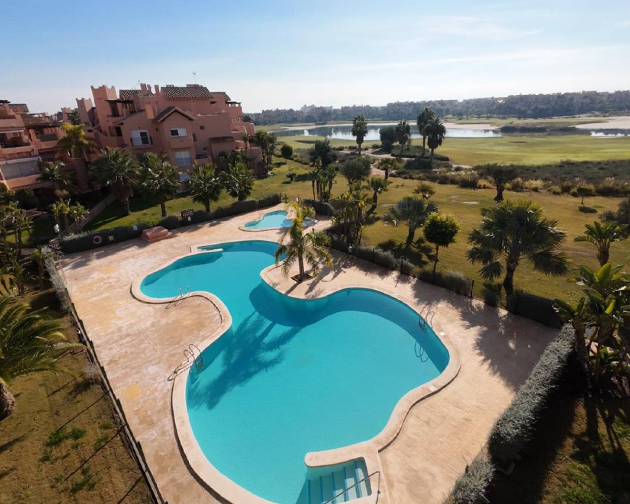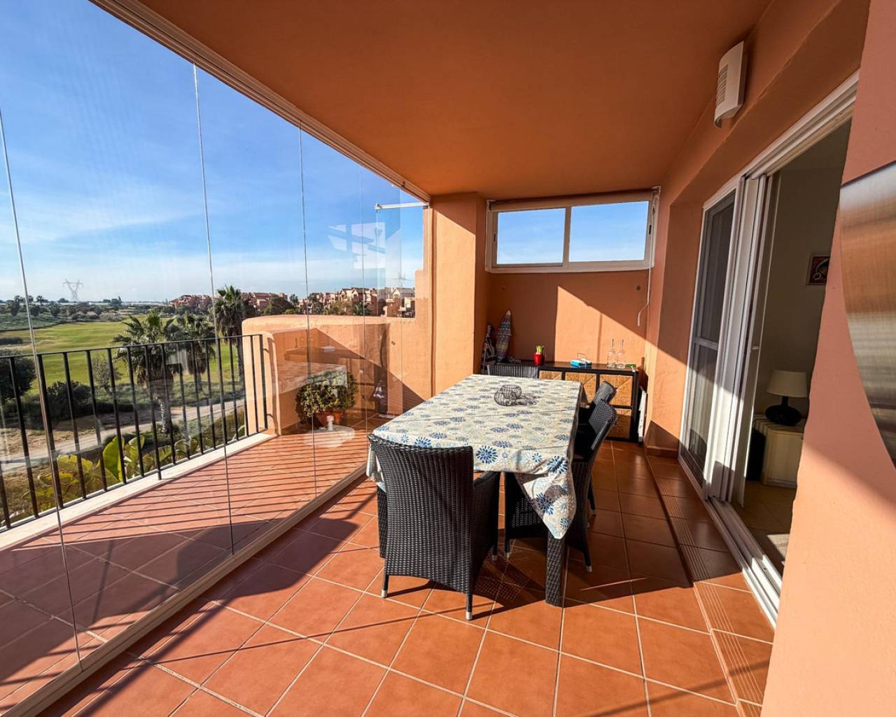 Frontline Golf Apartment with Lake Views – Mar Menor Golf Resort This well-positioned 2-bedroom, 2-bathroom apartment is located frontline on the golf course within the prestigious Mar Menor Golf Resort, offering open views over the fairways and the central lake. The apartment benefits from a south-facing orientation, ensuring excellent natural light throughout the day and making the most of the Mediterranean climate. The living and dining area opens onto a private terrace, ideal for outdoor dining while enjoying the peaceful golf and lake views. Both bedrooms are generously sized, with built-in wardrobes, and the two bathrooms are finished in a practical, modern style. The property is well suited as a permanent residence, holiday home, or investment property with strong rental appeal. A private garage space is included, providing secure and convenient parking. Set within a secure, well-maintained resort with 18-hole golf course, hotel, restaurants, and easy access to the beaches of the Mar Menor and the Costa Cálida, this apartment combines location, views, and orientation—key factors for long-term value. A solid frontline golf property in one of the region's most established resorts.