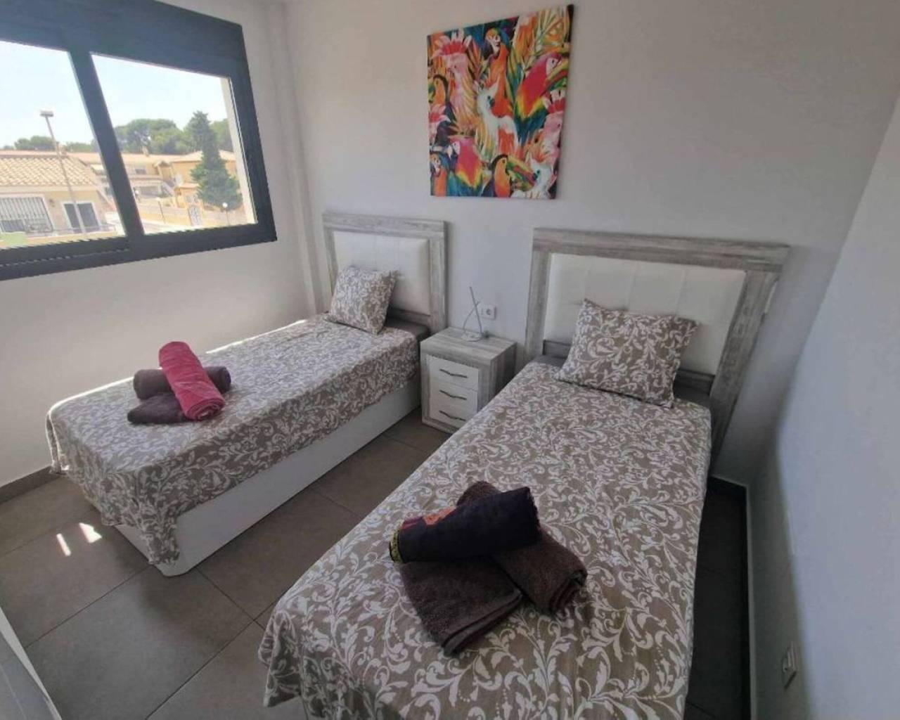 Welcome to the Valentino Golf 2 residence. Features: Modern apartment with 2 bedrooms, 2 bathrooms, fully equipped open-plan kitchen, living/dining room, balcony overlooking the communal swimming pool. Sold furnished, with reversible air conditioning and underground parking space. The gated and secure residence has 2 communal swimming pools and a children's play area, sports area and pétanque court. Location: Just behind the golf course, in a quiet area but only 800 metres from the bars and restaurants of Villamartín plaza. 4 km from the most beautiful beaches in the region. 2.5 km from La Zénia Boulevard shopping centre. 60 km from airports. Price: 239,000€.