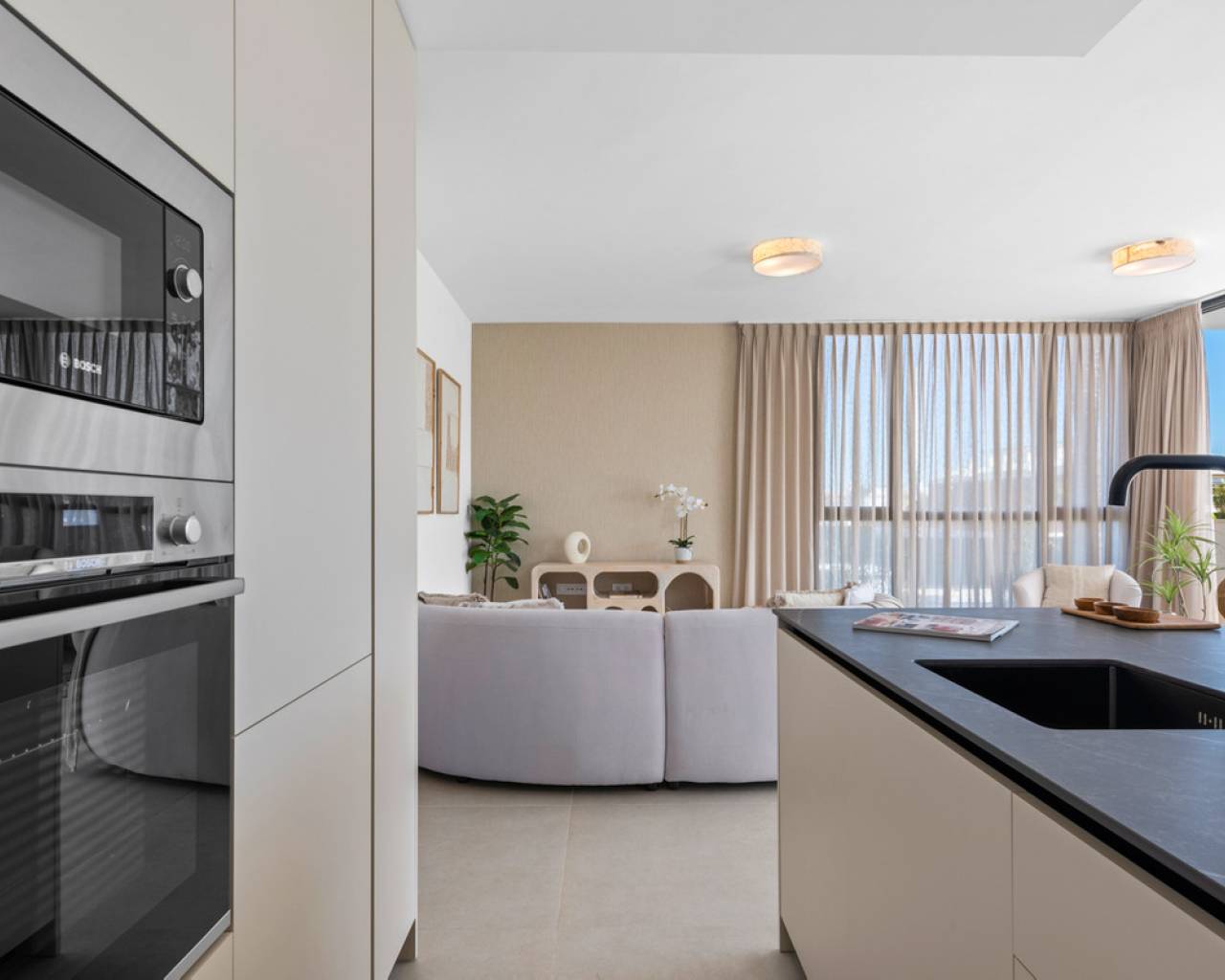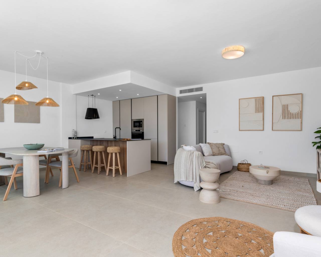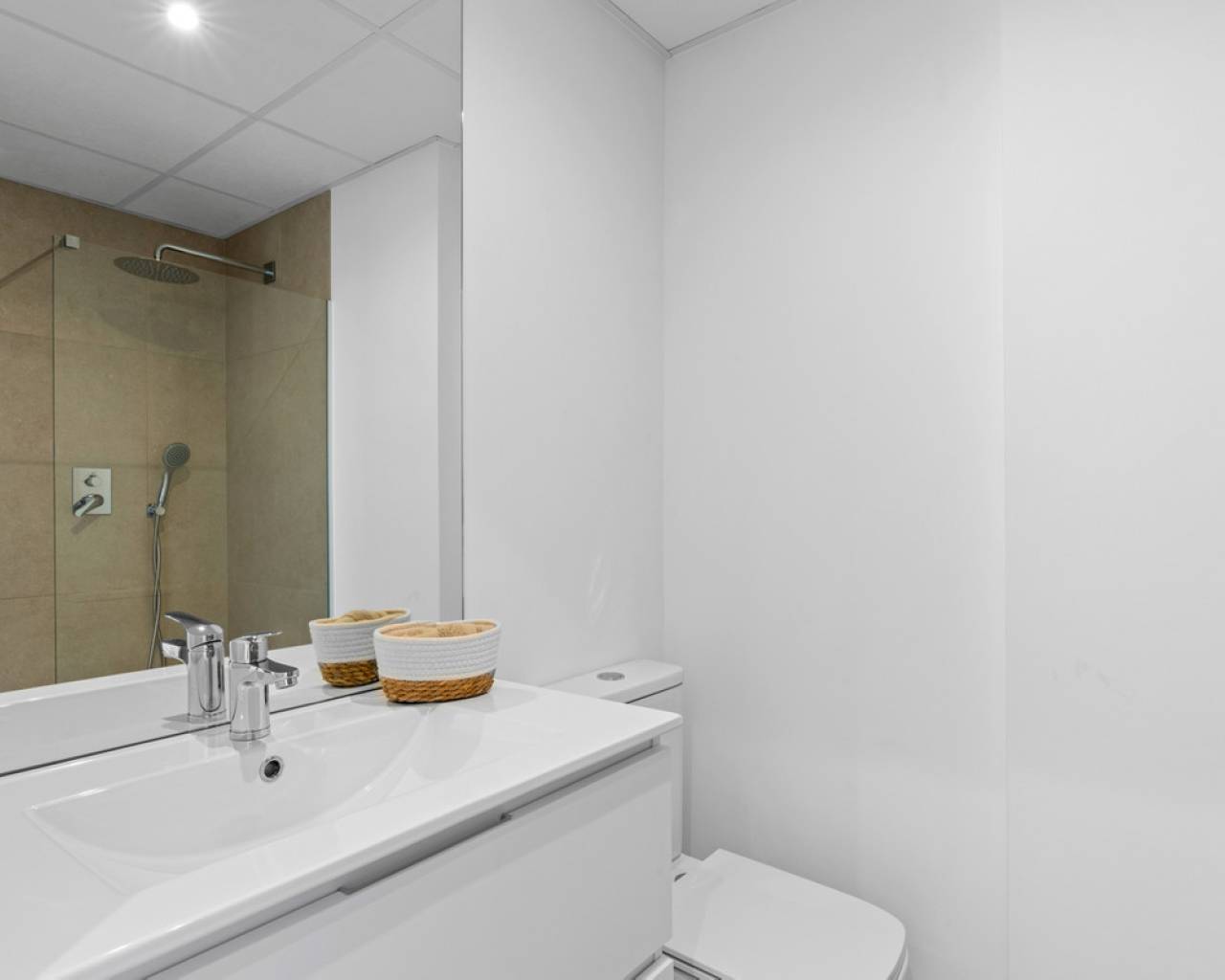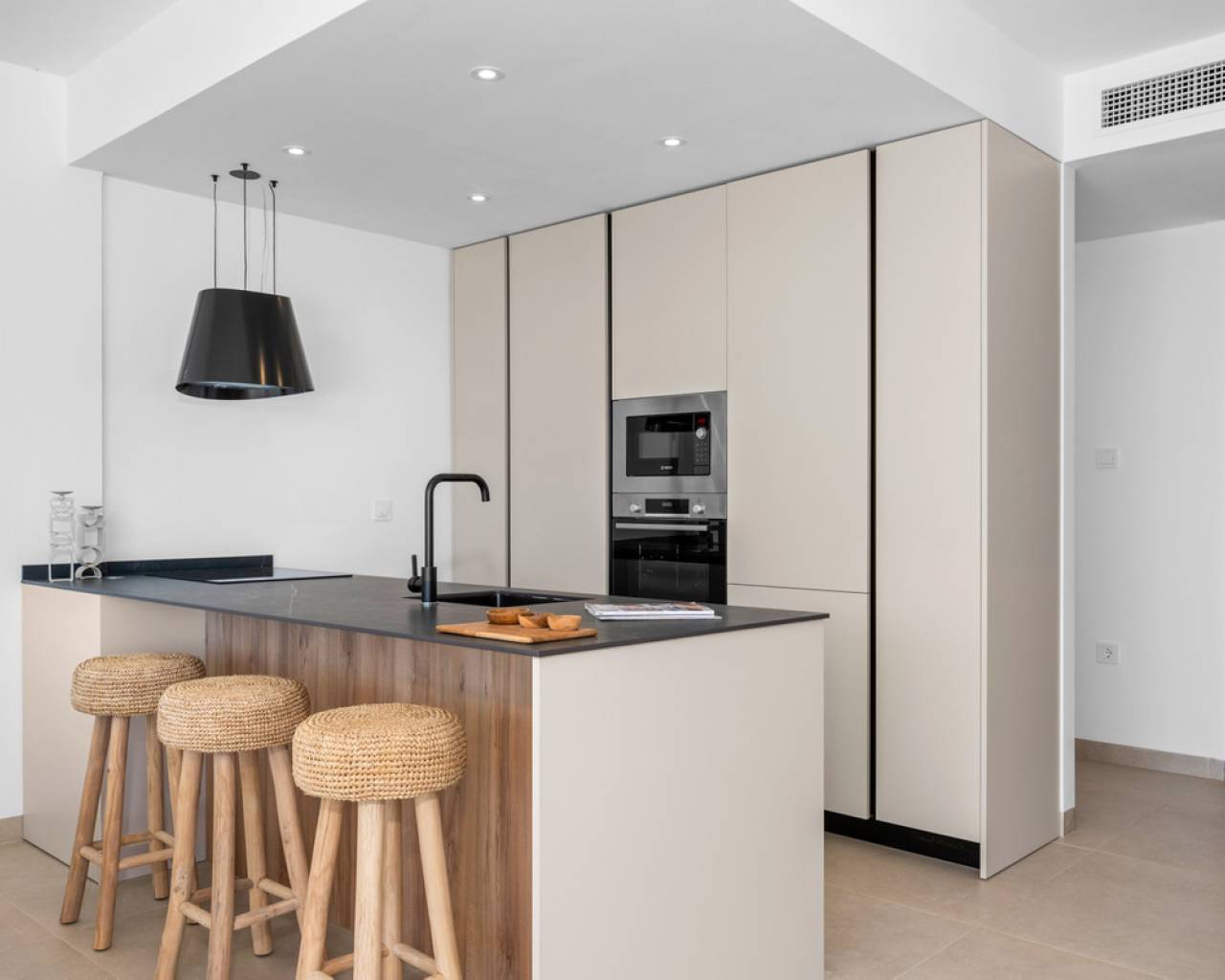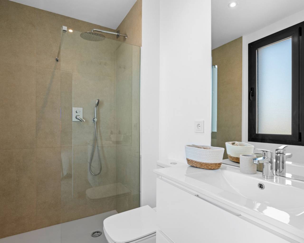 Modern style apartments, designed with open spaces and large windows, kitchen island, master bedroom with dressing room. Two bathrooms. The ground floors have big terraces facing to the pool whilst the phenthouse boast a solarium of more than 70m2. All homes are provided with a underground parking space for their vehicle and Storeroom.