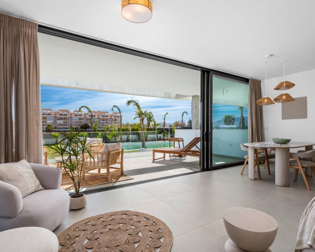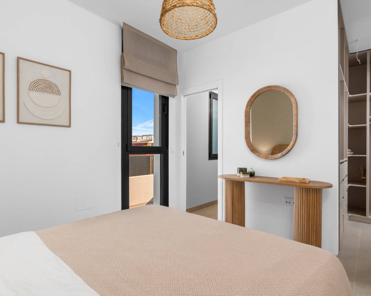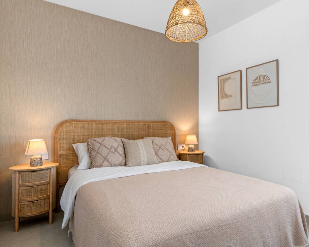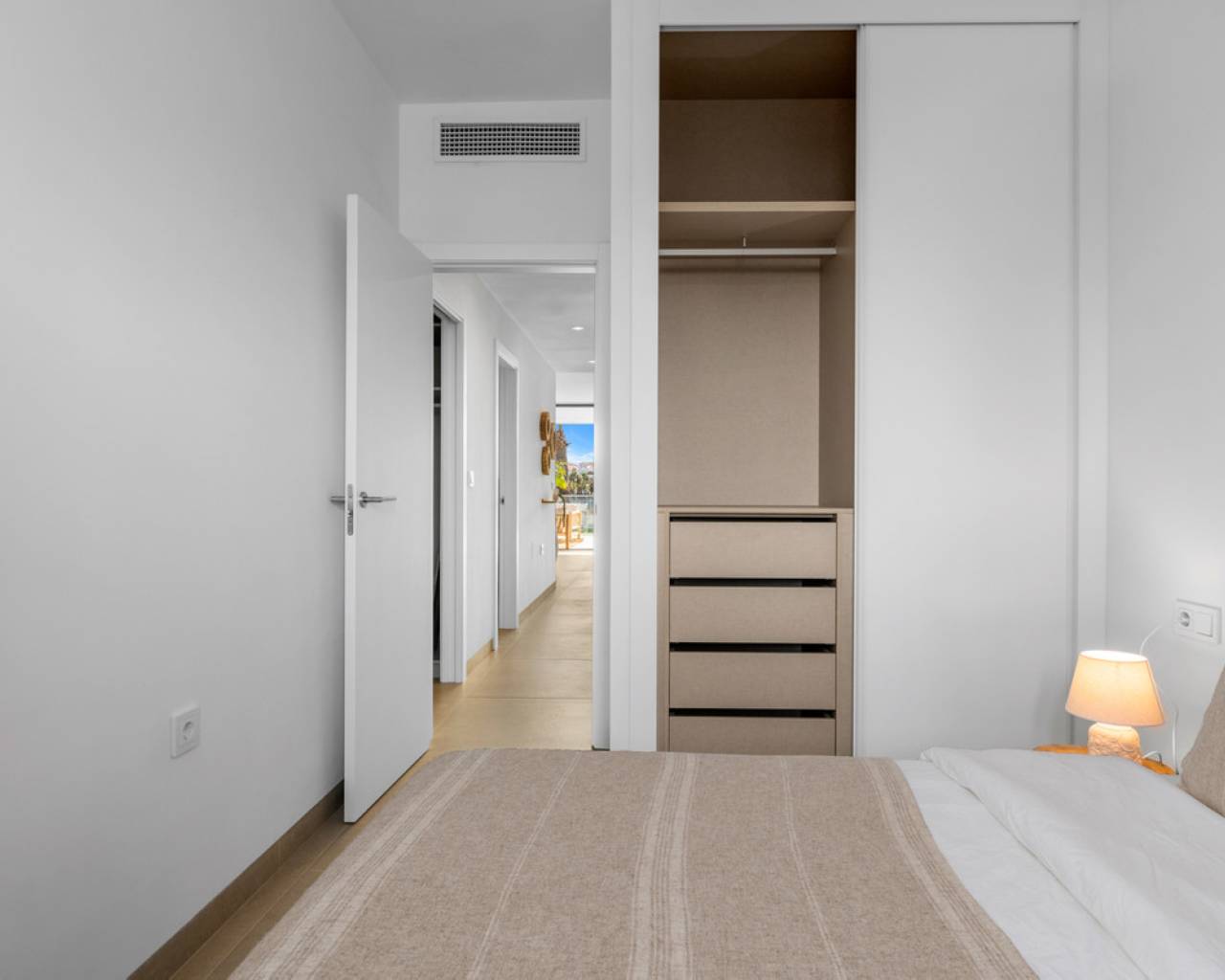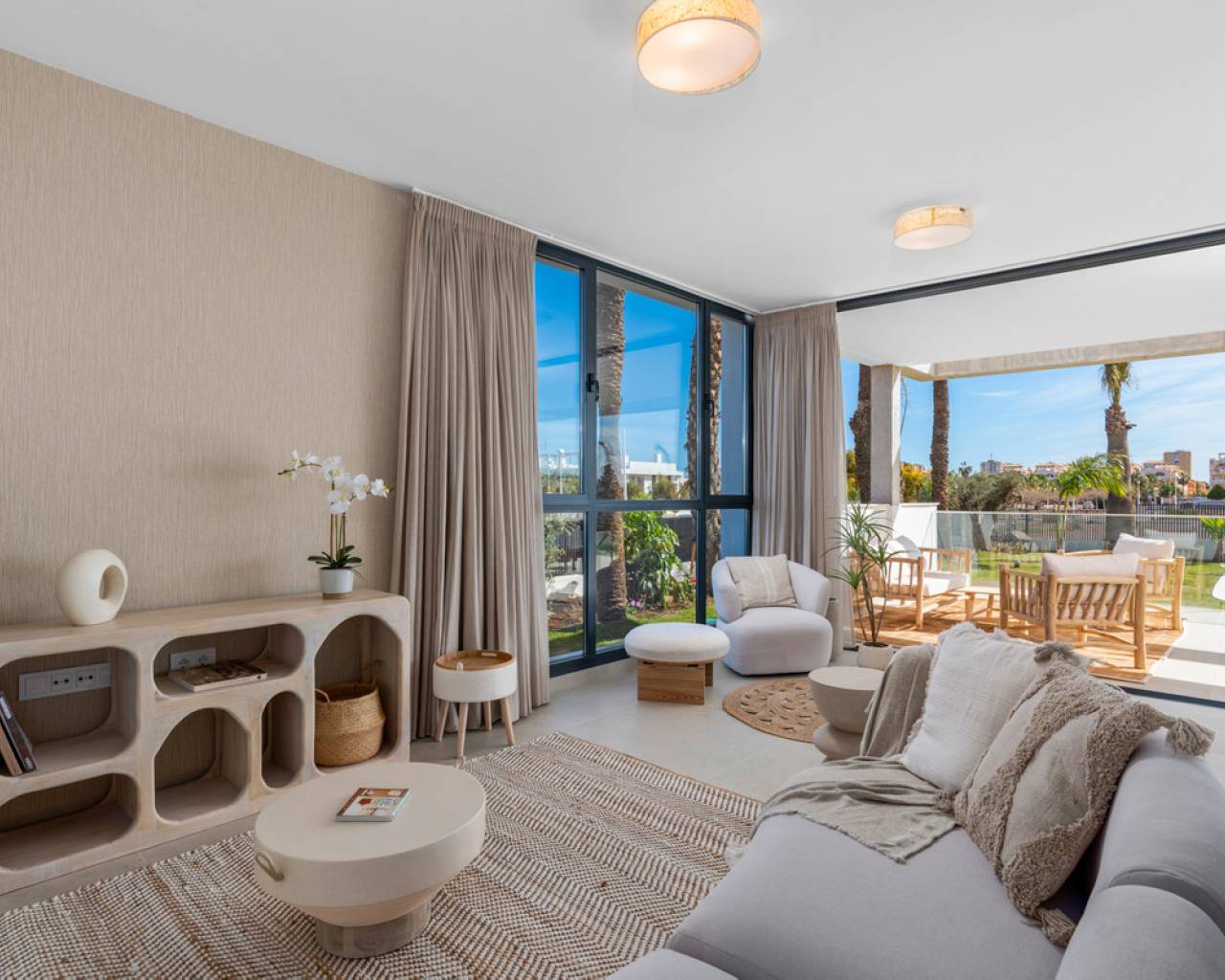 Modern style apartments, designed with open spaces and large windows, kitchen island, master bedroom with dressing room. Two bathrooms. The ground floors have big terraces facing to the pool whilst the phenthouse boast a solarium of more than 70m2. All homes are provided with a underground parking space for their vehicle and Storeroom.