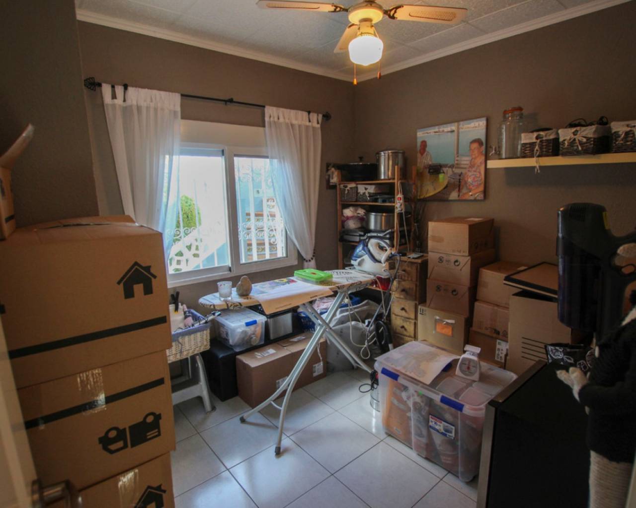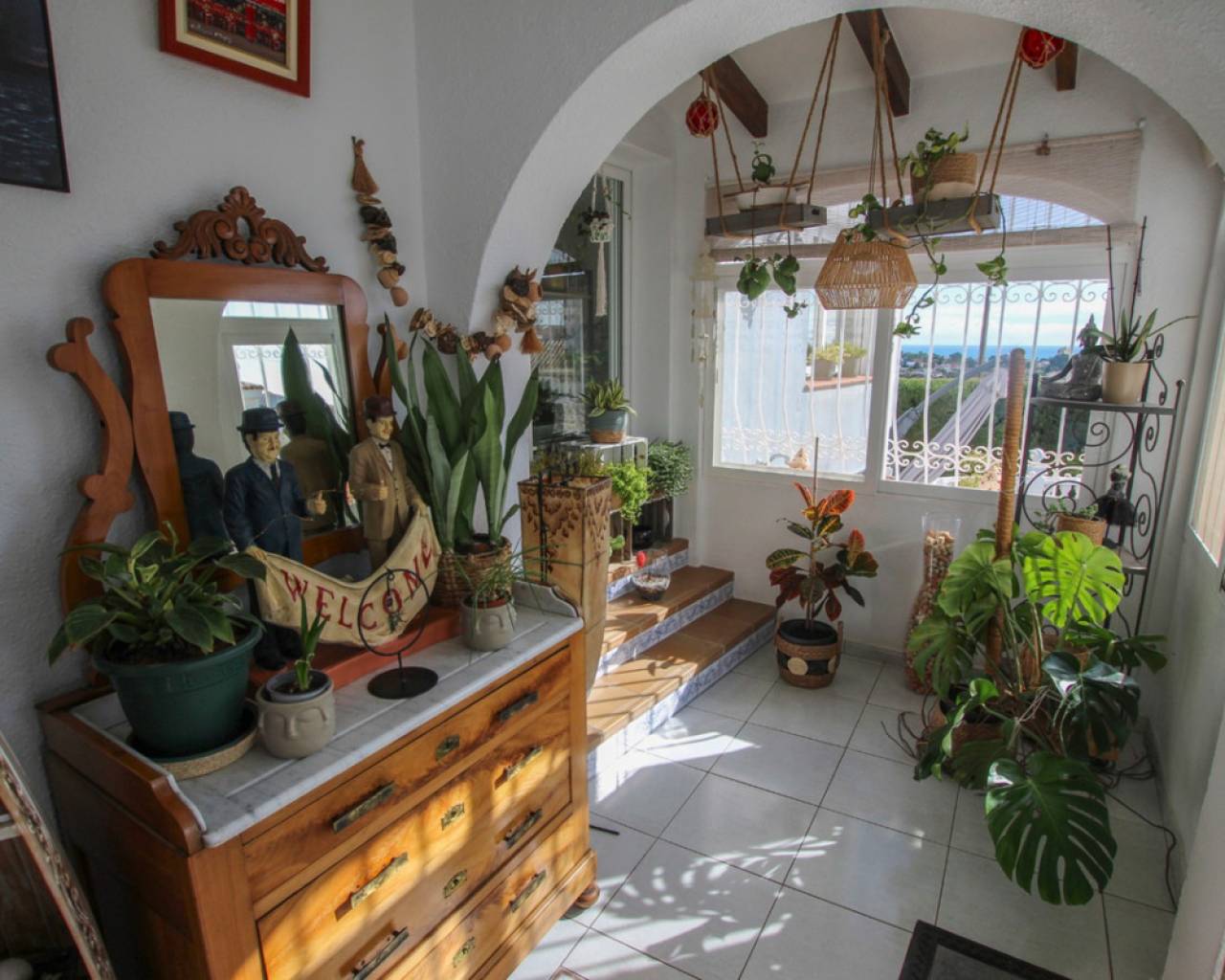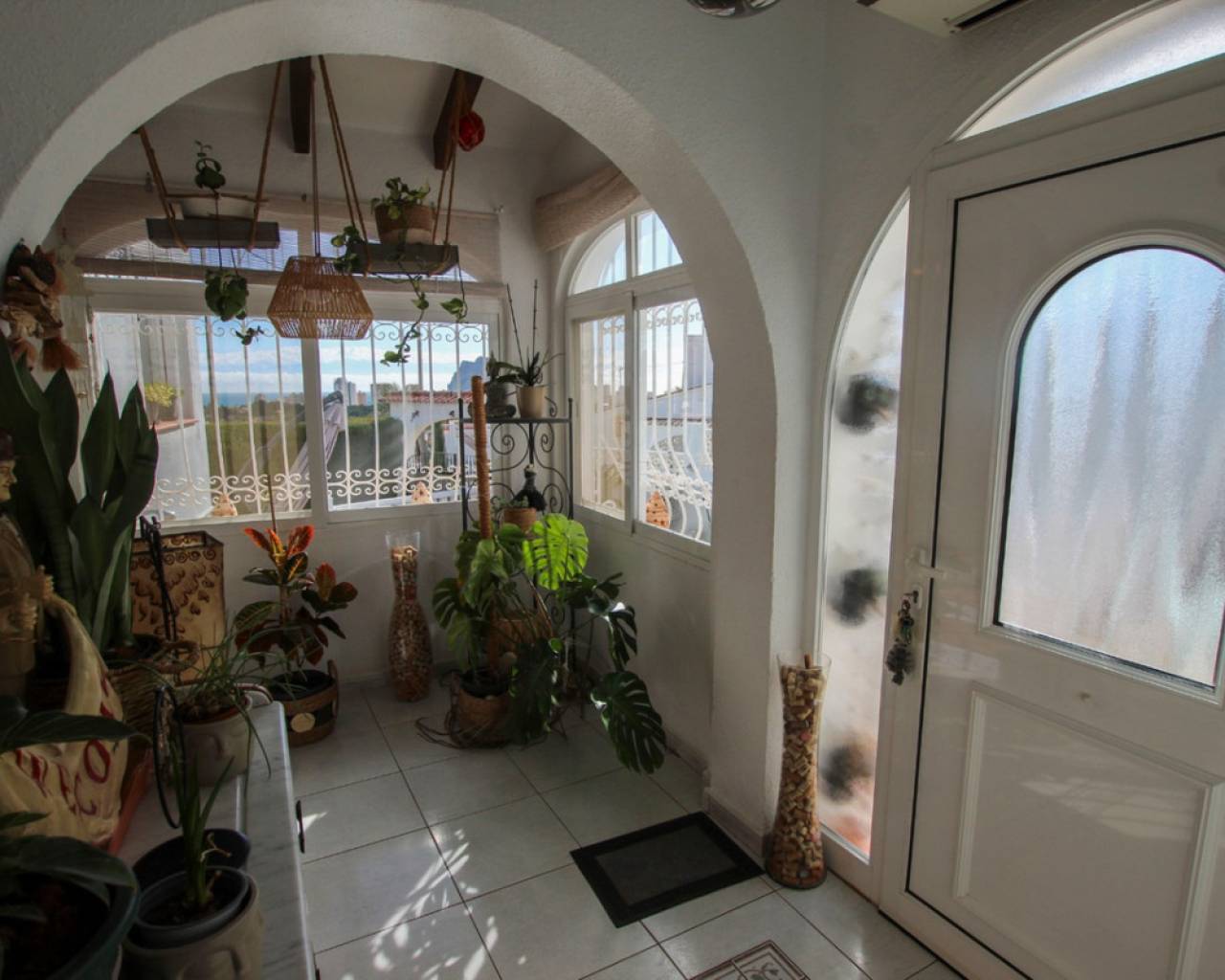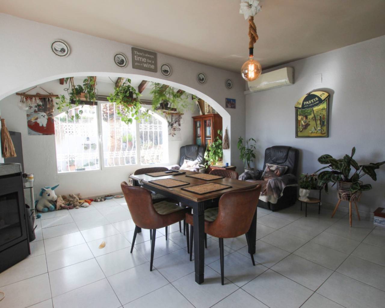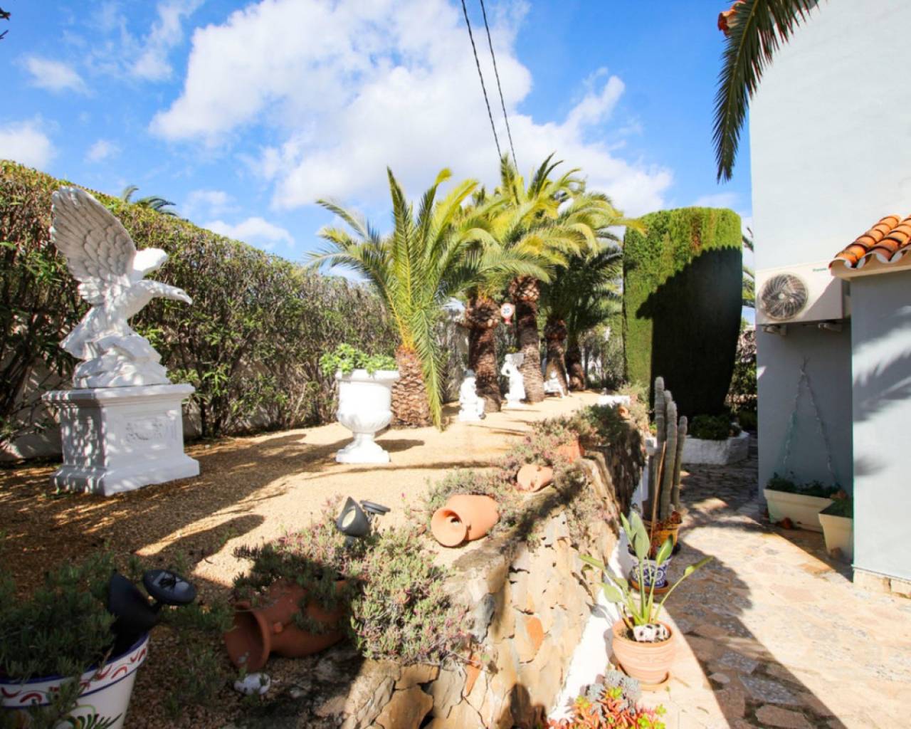 Located in an exclusive and quiet urbanization in Calpe, just a few minutes from shops, supermarkets, restaurants, and the beaches La Fossa, La Fustera, and Arenal-Bol, we offer this impressive villa with breathtaking sea views and the Peñón de Ifach. Layout Ground floor: spacious, bright living room with direct access to the garden; separate, fully equipped kitchen; second large living-dining room with pellet stove; multifunctional space (practically for an office/guest room); two full bathrooms (showers) and one bedroom.First floor: master suite with complete en-suite bathroom (shower) and access to the solarium via an external staircase. The solarium is equipped with a fully equipped outdoor kitchen — ideal for barbecue evenings with family and friends, with views over the sea and the Peñón.Outdoors and Extras Private swimming pool and beautifully landscaped Mediterranean garden.Storage room with automatic roller shutter, rainwater tank connected to the automatic irrigation system.Garage and parking space for 2 cars.Electric driveway and garage gates.