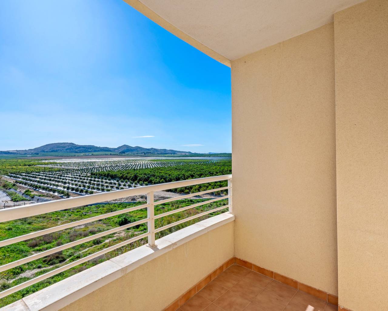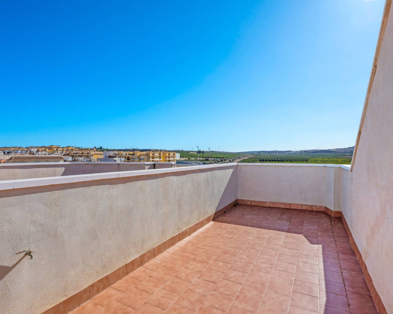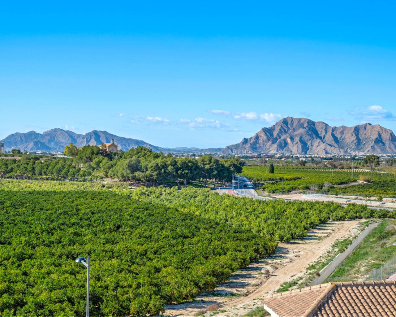 This charming two-bedroom apartment with stunning countryside views is located in the centre of Algorfa, Alicante. The property features a bright living/dining room, a fully equipped semi-open kitchen, two bedrooms with fitted wardrobes, a bathroom with a bathtub, a south-facing terrace with fantastic views of the surrounding countryside and mountains, and there is also a private rooftop terrace/solarium for making the most of the sun and the views.