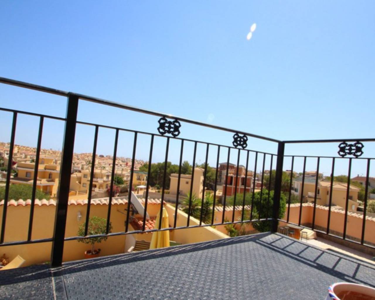 Beautiful detached 4-bedroom with private swimming pool and underbuilt apartment in Villamartin, Alicante This beautiful family home offers in the main living area three double bedrooms, family bathroom, toilet, cloakroom, spacious lounge/dining room, fully fitted kitchen with breakfast bar and storage area. The villa also boasts a private under build apartment with direct access to the pool area and offers double bedroom, spectacular bathroom, sleek and modern open plan kitchen with breakfast bar and spacious lounge/dining area. Outside space boasts numerous terraces, wrap around balcony, established garden and private swimming pool (8x3). To be sold furnished including white goods, security shutters, grilles, air conditioning, satellite TV, gas fire and much more. Located in a quiet residential area and just a short drive to the popular Villamartin Plaza, several golf course and numerous white sandy beaches on the Orihuela Costa.
