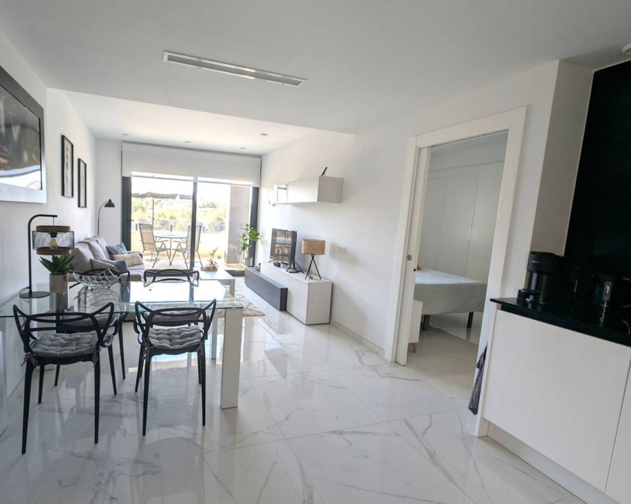 Villamartin Pau 26 Corner Top Floor Modern 2 bed 2 bath Penthouse for sale with panoramic views of the countryside and to the communal pool and Gardens located in Amanecer VI with secure parking and lockup storage room. Stylish "Show House" Living in Pau 26 Villamartin Views, Sun & Style! Step into luxury with this immaculately presented 2-bedroom, 2-bathroom apartment. Finished to "Show House" standards, this bright and airy home is being sold fully furnished and ready for you to start living the Mediterranean dream immediately. The HighlightS: Panoramic Terrace: Your private sanctuary for morning espressos and sunset wine & dining. Modern Open-Plan Living: A seamless flow from the sleek, fully equipped kitchen through the lounge to the sun-soaked terrace. Comfort All Year: Central AC throughout plus underfloor heating in both bathrooms for those cozy winter mornings. Master Suite: Spacious master bedroom featuring a private ensuite. Extras Included: Secure underground parking bay and a private storeroom. Resort-Style Amenities: Located within an exclusive gated complex, you'll have direct access to a stunning communal pool surrounded by lush green lawns and swaying palm trees—the perfect escape for those peak summer days. The Location: Nestled in a tranquil pocket of Los Altos/Villamartin, you are perfectly positioned for both relaxation and convenience: Walkable: Moments from supermarkets, bars, and restaurants at Via Park CC. Beach Life: Just 3km to the pristine sandy beach of Punta Prima. Quiet & Connected: A peaceful residential feel while being close to the vibrant commercial centers. Whether you're looking for a turnkey holiday home or a sophisticated permanent residence, this apartment delivers on every level.