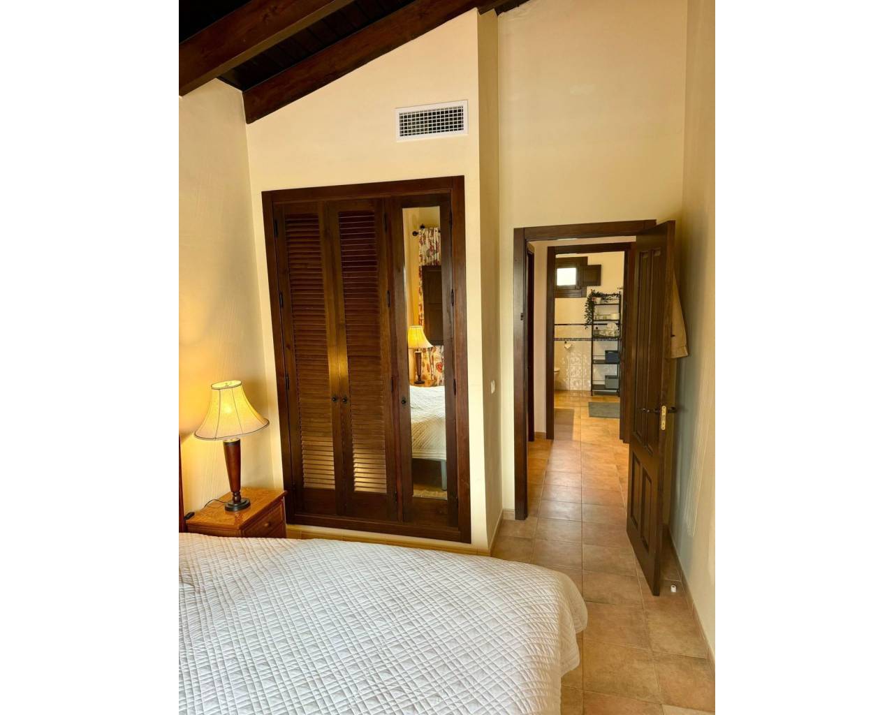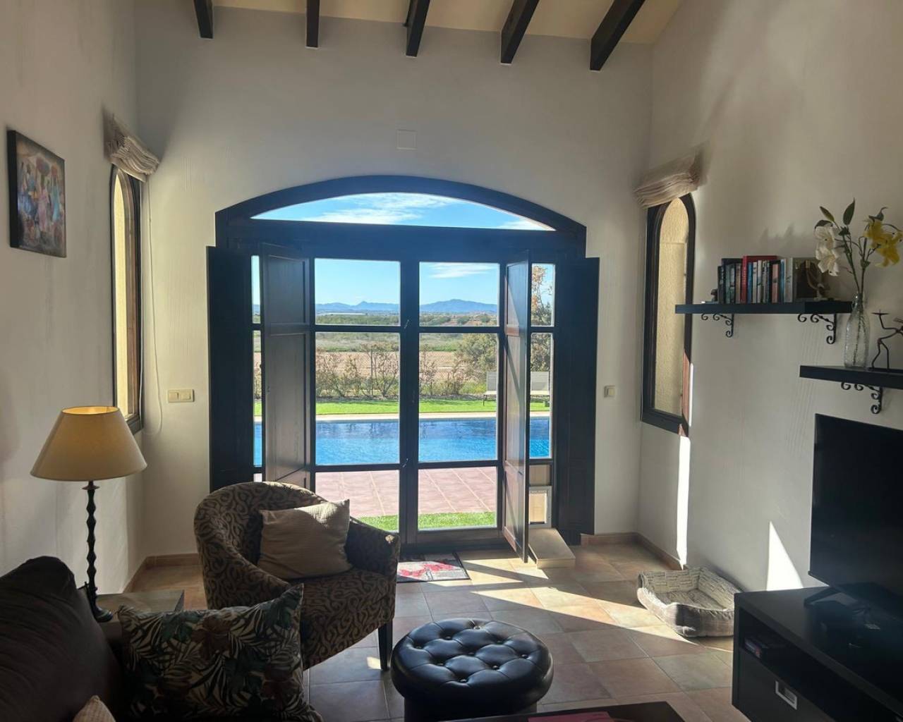 Welcome to a truly special home on Hacienda del Álamo Golf Resort, where space, privacy and breathtaking views come together in perfect harmony. Located on Calle Alemania, this west-facing villa enjoys unobstructed views over the golf course, surrounding mountains and unforgettable sunsets. Set on a generous 1,000 m² plot, the property offers peace, privacy and a warm Mediterranean atmosphere—ideal for both full-time living and luxurious holidays. The villa is beautifully maintained, built in 2001 with quality finishes, and comes completely furnished, ready for you to move in and enjoy from day one. The sun-drenched terrace and private 10 x 5 m swimming pool create the perfect outdoor living space, ideal for relaxing, entertaining and making the most of Murcia's climate. Inside, the home feels welcoming and light-filled. The living room is a true highlight, featuring a log burner and stunning views of the pool and golf course—perfect for cosy winter evenings or relaxed summer nights. The fully equipped kitchen has a separate access to the garden, blending indoor and outdoor living seamlessly. The layout is both practical and flexible, offering three spacious bedrooms with built-in wardrobes—two on the ground floor and one on the first floor—along with two complete bathrooms. Upstairs, a charming gallery with sitting area provides an ideal space for reading, working, or simply enjoying the views, accessed via a wide and elegant spiral staircase. The garden is beautifully landscaped yet easy to maintain, featuring lemon trees, olive trees and mandarins, adding to the authentic Spanish feel. Additional features include private parking or driveway space, covered storage for bikes or equipment, and a 150-litre hot water boiler. Key Features at a Glance • 3 bedrooms | 2 bathrooms • 145 m² useful build area • 1,000 m² private plot • West-facing with sunset, golf and mountain views • Private 10 x 5 m swimming pool • Completely furnished • Quiet, private and not overlooked Prime Location • Murcia city: 25 km • Cartagena: 30 km • Corvera Airport: 12 km • Nearest beaches: 35 km As part of Hacienda del Álamo Golf Resort, owners enjoy access to a championship 18-hole golf course, SPA hotel, supermarket, shops, bars and restaurants, all within a secure, gated and immaculately maintained resort. The setting offers a relaxed Mediterranean lifestyle with excellent accessibility and strong investment appeal. The owners are selling due to private reasons, making this a rare opportunity to acquire a high-quality villa in one of Murcia's most sought-after golf resorts. If you are looking for space, views, privacy and true Mediterranean living, this exceptional property deserves your attention.