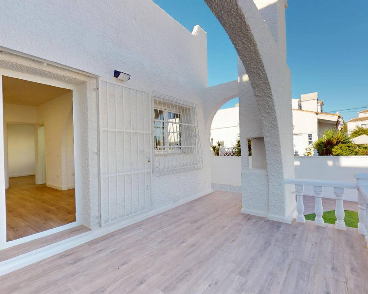 Discover an exceptional opportunity in Blue Lagoon a fully renovated bungalow, ready to move into, where Mediterranean charm and contemporary design meet in a prime location. Priced at €199,000, this property is an ideal choice both for living and for investment.Main features of the property202 m² plot with 147 m² of private garden58 m² built area48 m² private solarium with artificial grass and heather fencingPossibility to install a private swimming poolWood-effect laminate flooring2 bedrooms1 fully renovated bathroom with shower and screenNew kitchen fully equipped with appliances (washing machine and dishwasher)This bungalow has been carefully renovated to offer a turnkey home, balancing functionality, style, and warmth. The spacious garden invites you to enjoy outdoor living, while the solarium becomes a true private oasis for relaxation or social gatherings. very close to two golf courses, Villamartín Shopping Centre, and well-known leisure spots such as Marimba Blue Pool Lounge Bar and the iconic Greenlands Blue Lagoon.IBI 144 €COMUNIDAD 199 € APROX AL AÑOA property designed for those seeking comfort, quality living, and a solid investment from day one.