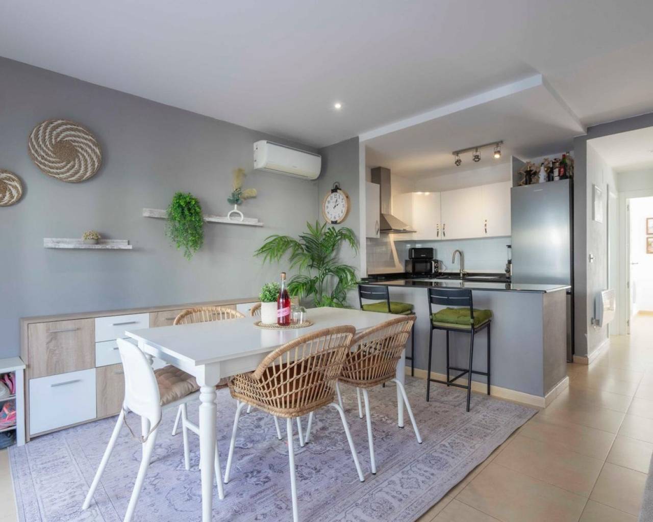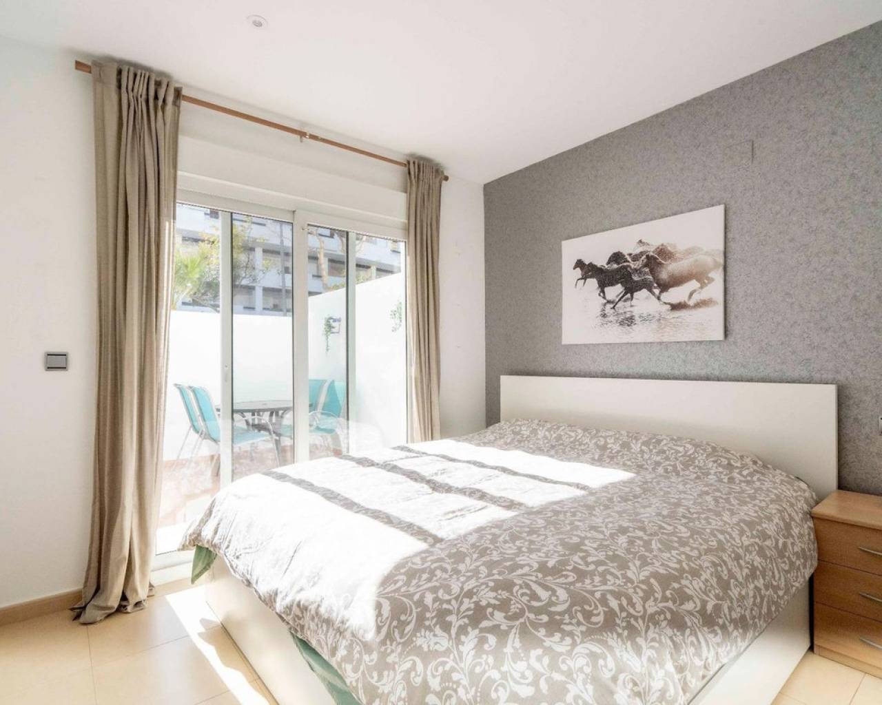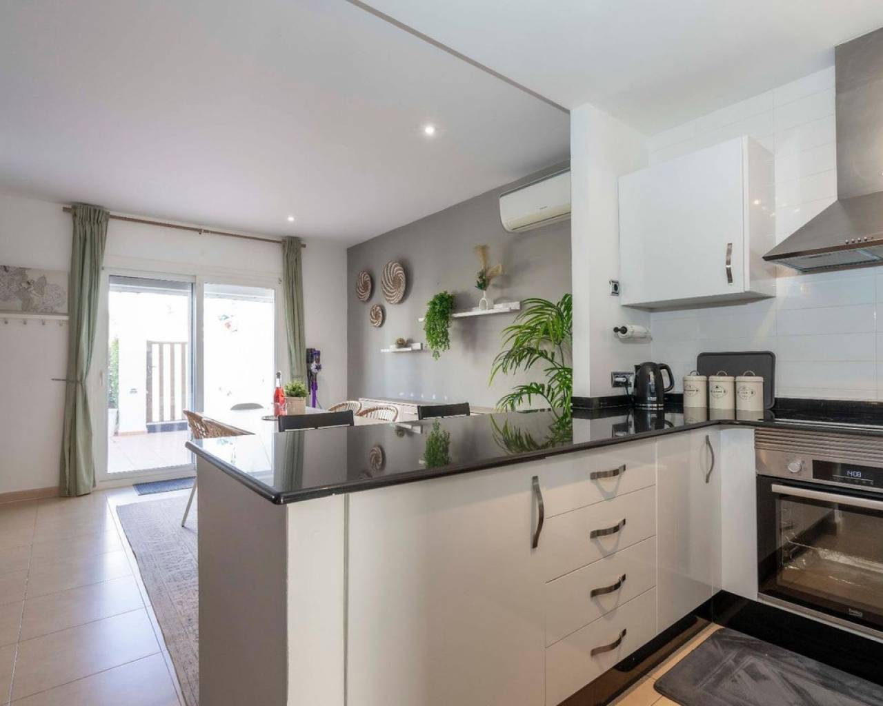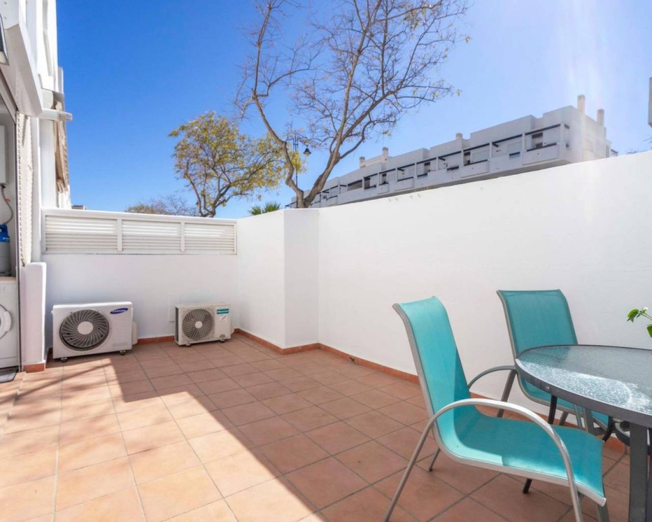 This beautifully upgraded two-bedroom, one-bathroom ground-floor apartment is located in the sought-after Naranjos 2 community within the popular Condado de Alhama resort. Presented in excellent condition and ready to move straight into, the property offers a bright, modern feel enhanced by quality improvements throughout. The apartment features a stylish kitchen with granite worktops and crisp white cabinetry, complemented by almost-new appliances. The spacious living and dining area provides a comfortable and welcoming space for relaxing or entertaining, while built-in wardrobes and two newly installed air-conditioning units ensure both practicality and year-round comfort. The fully tiled bathroom with walk-in shower is finished to a high standard, and thoughtful details such as white door frames and a gas water heater add to the home's fresh, contemporary appeal. Outside, the fully tiled private terrace creates an ideal setting for outdoor dining or unwinding in the sunshine, with the added benefit of an awning for shade. A rare under-stairs storage area offers valuable extra space, perfect for bicycles, golf equipment, or beach essentials. Offered at €128,000, this exceptional apartment represents an ideal opportunity as a holiday retreat, a rental investment, or a comfortable permanent residence, all within the well-established and highly desirable Condado de Alhama resort.