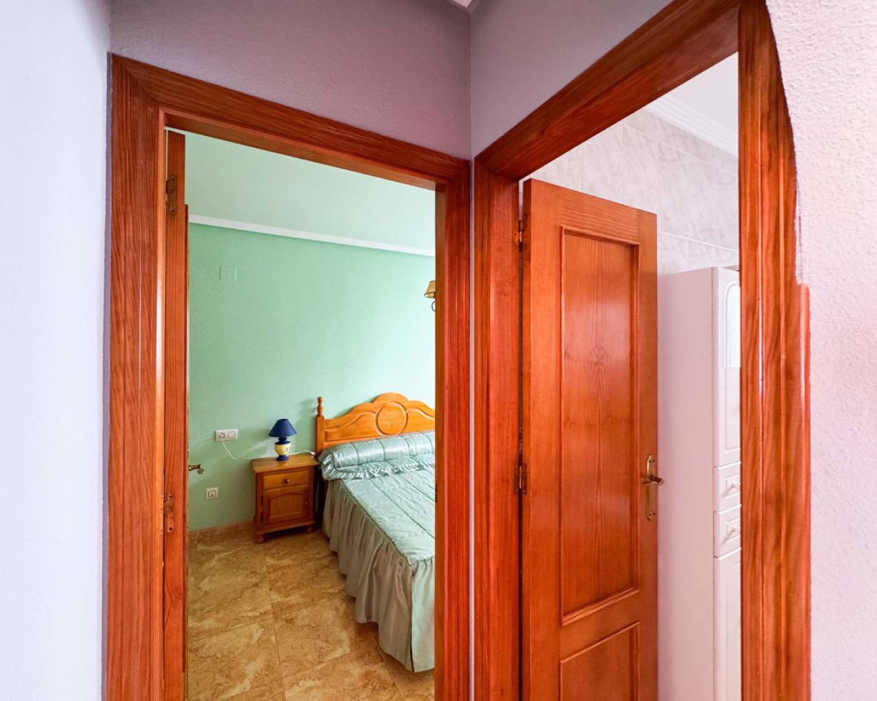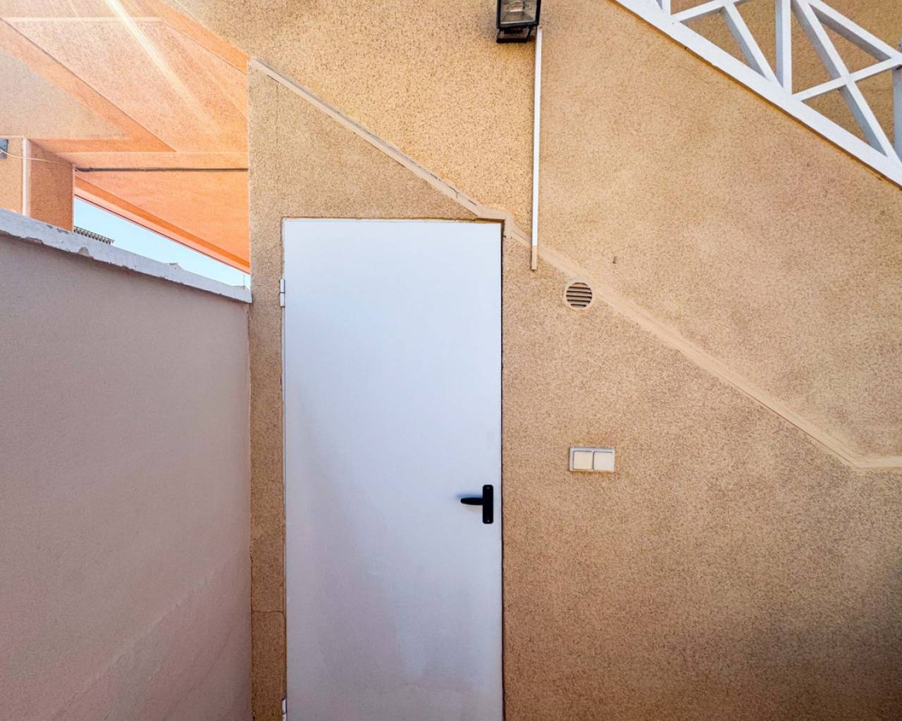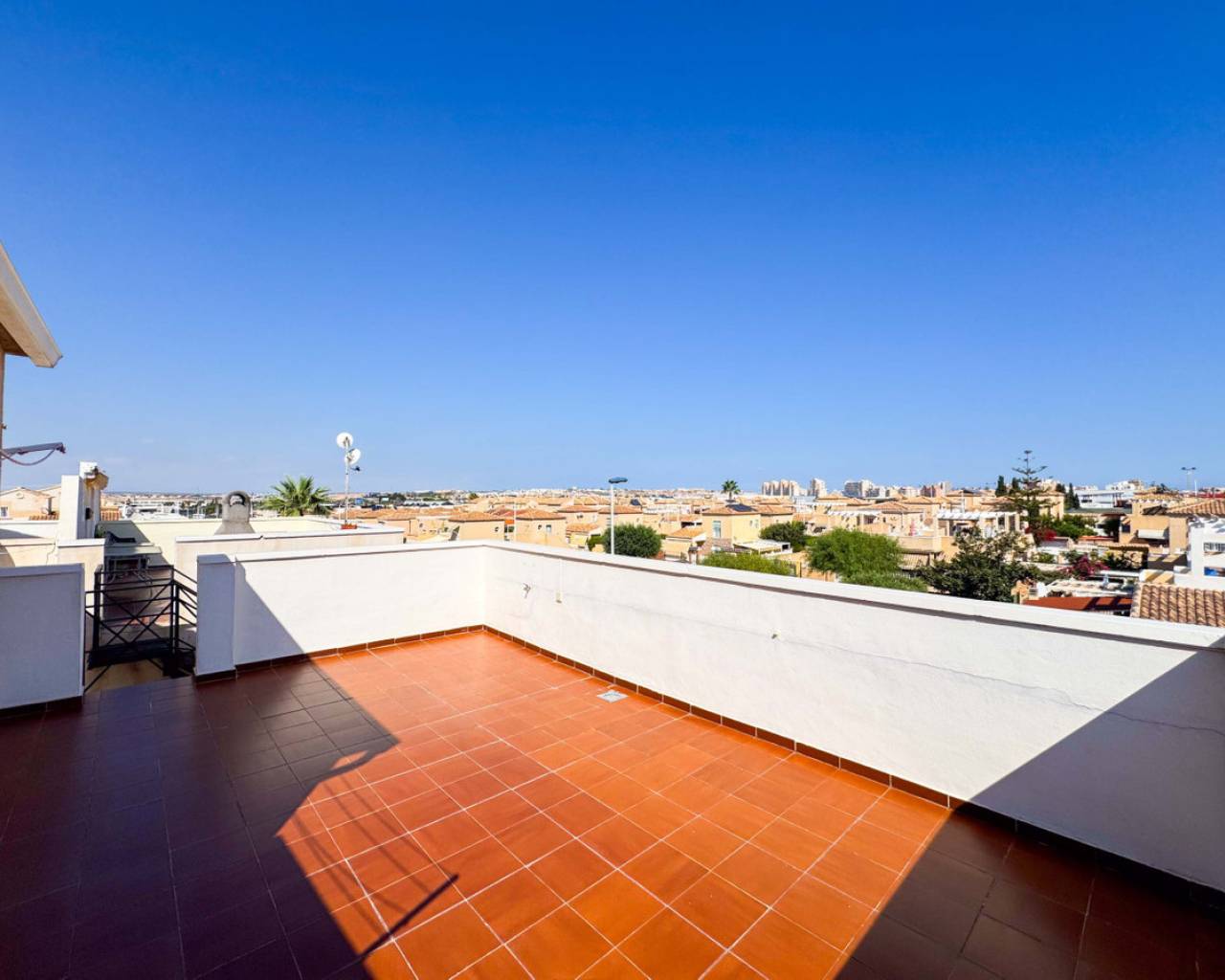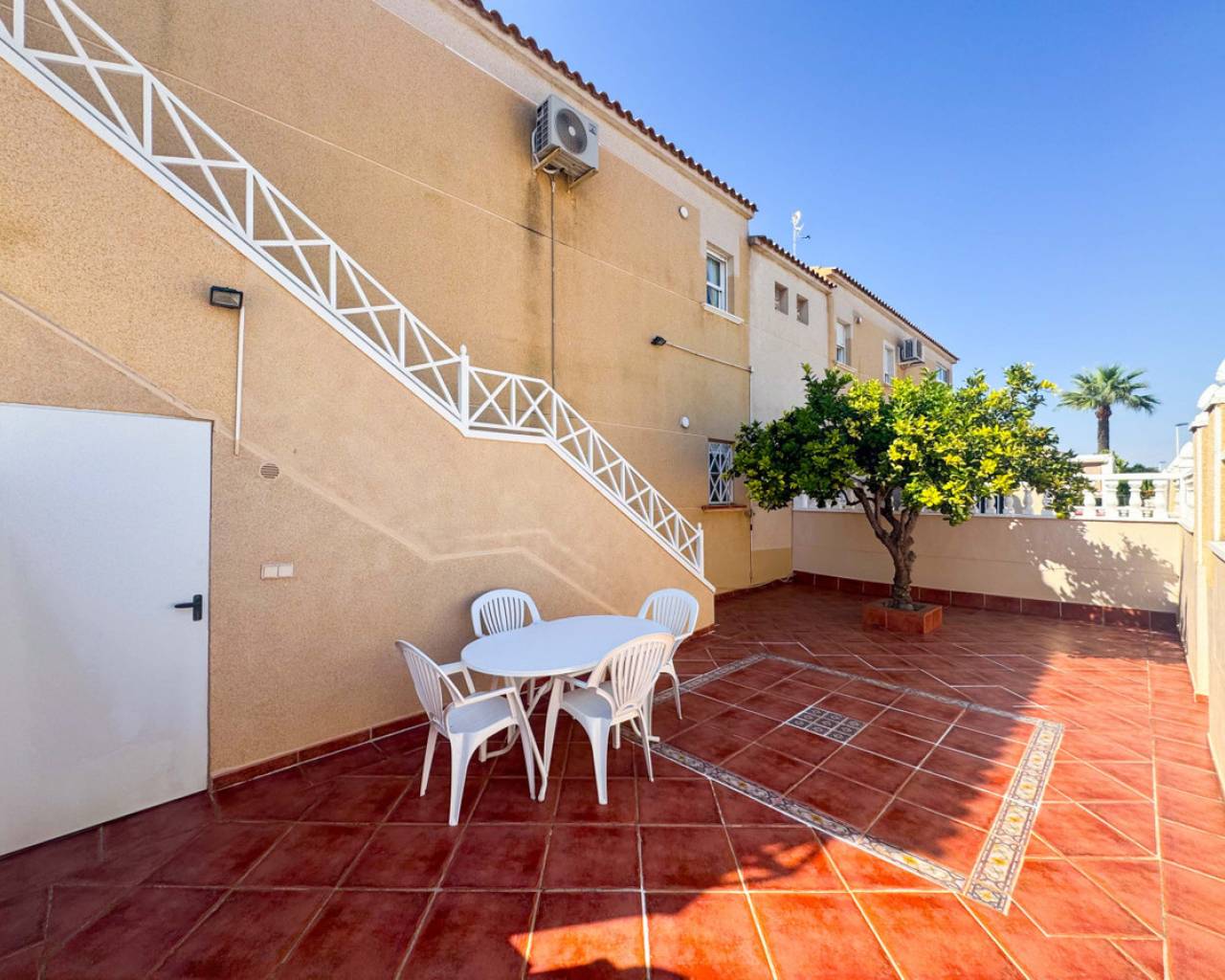 This top-floor bungalow located in the Urbanización Parque de las Naciones features a large 50 m² terrace, a private 26 m² solarium, and a private parking space included. The property includes a bright living-dining room, a fully equipped independent kitchen, two bedrooms with built-in wardrobes, and a full bathroom with bathtub. It also offers a private 10 m² porch and access to a 26 m² solarium via an exterior staircase. The community has a swimming pool and is set in a quiet environment with all nearby services: shops, green areas, public transport, and leisure zones. This home is perfect for living or investment, with seasonal rental options available. Contact us to schedule a physical or virtual visit and request detailed plans.