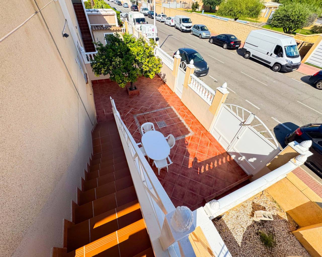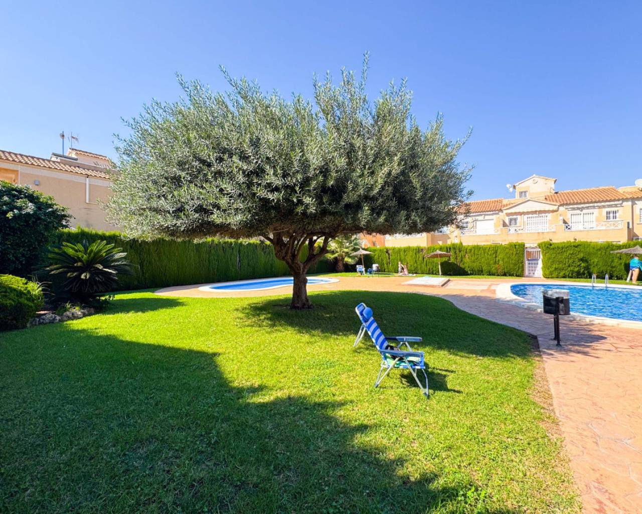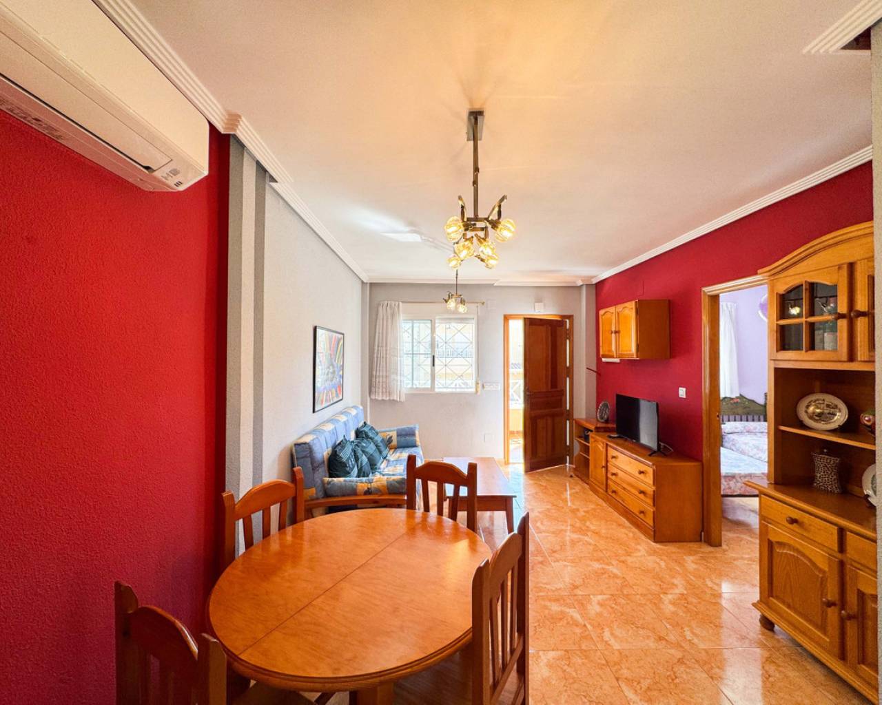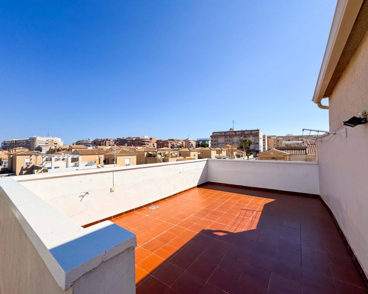 This top-floor bungalow located in the Urbanización Parque de las Naciones features a large 50 m² terrace, a private 26 m² solarium, and a private parking space included. The property includes a bright living-dining room, a fully equipped independent kitchen, two bedrooms with built-in wardrobes, and a full bathroom with bathtub. It also offers a private 10 m² porch and access to a 26 m² solarium via an exterior staircase. The community has a swimming pool and is set in a quiet environment with all nearby services: shops, green areas, public transport, and leisure zones. This home is perfect for living or investment, with seasonal rental options available. Contact us to schedule a physical or virtual visit and request detailed plans.