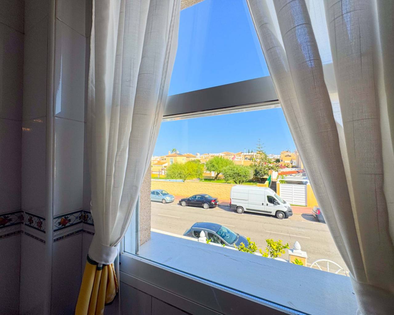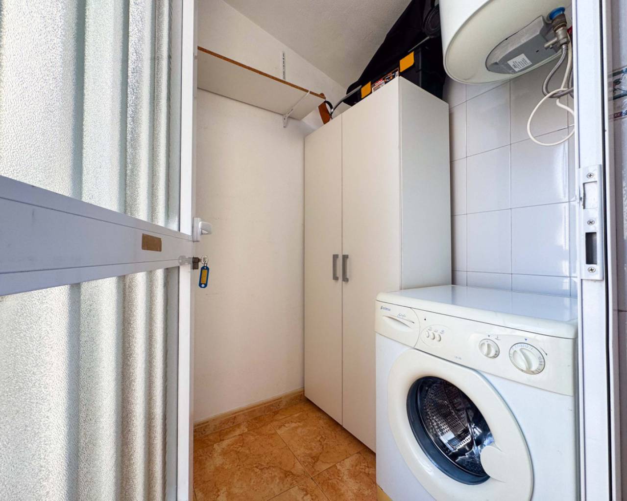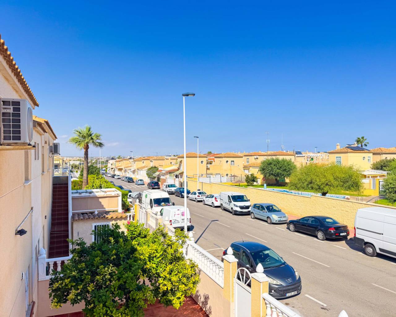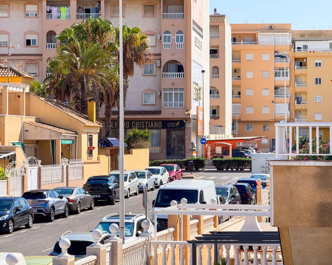 This top-floor bungalow located in the Urbanización Parque de las Naciones features a large 50 m² terrace, a private 26 m² solarium, and a private parking space included. The property includes a bright living-dining room, a fully equipped independent kitchen, two bedrooms with built-in wardrobes, and a full bathroom with bathtub. It also offers a private 10 m² porch and access to a 26 m² solarium via an exterior staircase. The community has a swimming pool and is set in a quiet environment with all nearby services: shops, green areas, public transport, and leisure zones. This home is perfect for living or investment, with seasonal rental options available. Contact us to schedule a physical or virtual visit and request detailed plans.