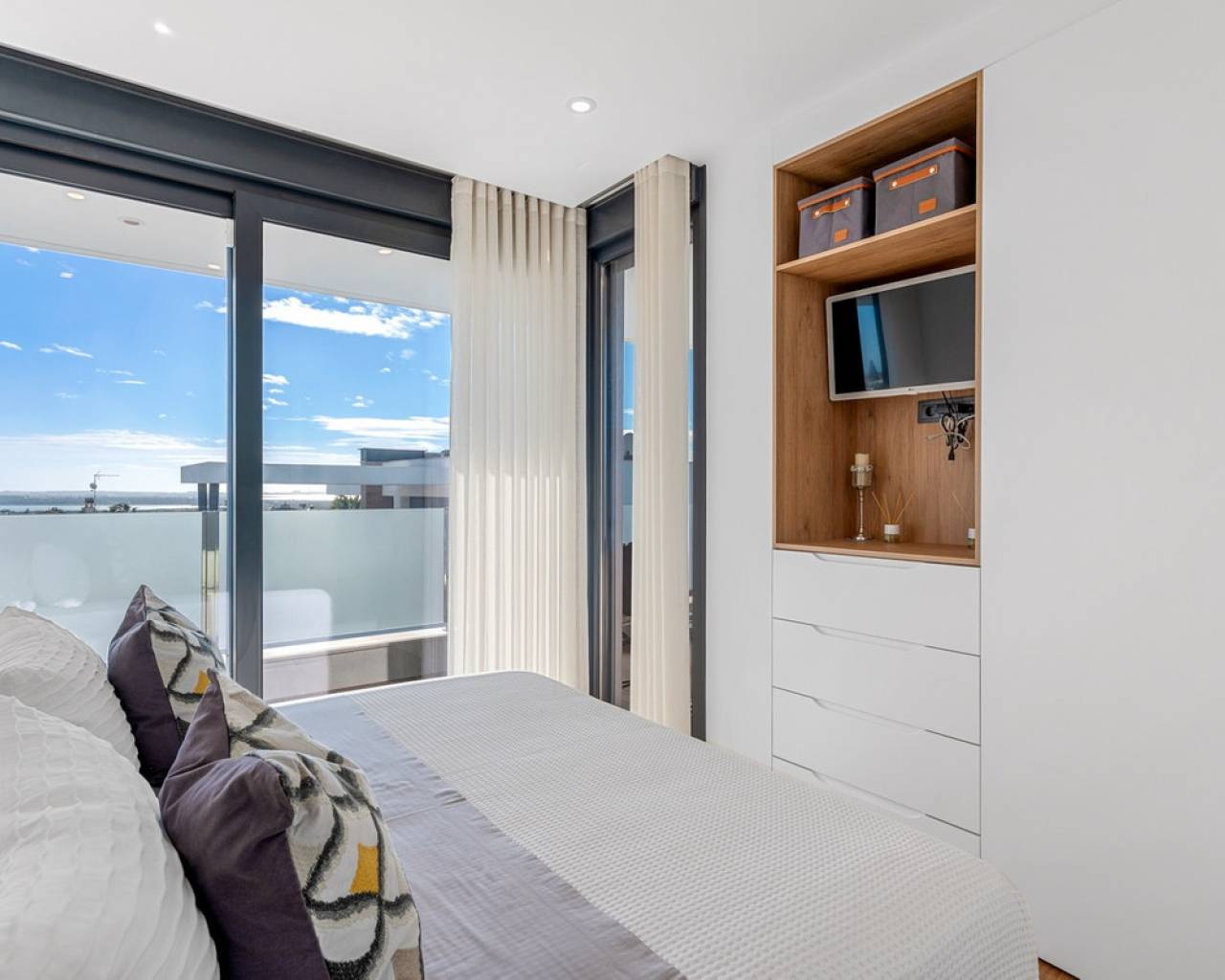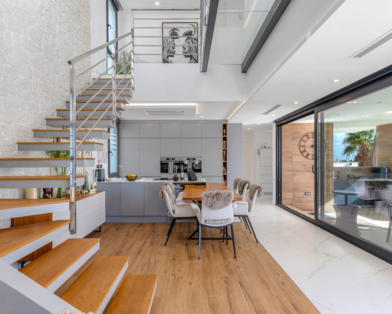 EXCLUSIVE LUXURY VILLA WITH SALT LAKE, SEA & MOUNTAIN VIEWS IN QUESADA, COSTA BLANCA Discover the unparalleled charm of this exceptional detached contemporary villa, ideally located in one of Ciudad Quesada's most sought-after residential areas. Elevated and secluded, the property offers a perfect balance of privacy, architectural refinement, and panoramic views across the Salt Lakes, Mediterranean Sea, and surrounding mountains, while remaining just moments from the town centre. Impeccably presented, the villa epitomises modern luxury living, combining comfort, discretion, and cutting-edge smart-home technology, fully controllable via app from anywhere in the world. Its prime location ensures effortless access to fine dining, boutique shopping, golf courses, and everyday amenities, making it perfect for permanent living or an elegant Mediterranean retreat. Set behind electric gates, a generous private driveway leads to the villa, offering parking for multiple vehicles and a carport for larger vehicles or a motorhome. The generous plot is beautifully landscaped and designed for outdoor living, with a 9 x 5 metre saltwater swimming pool with electric cover, sun terraces, fruit trees, and inviting entertainment areas. A stylish summer kitchen, barbecue, and comfortable seating make it ideal for long afternoons or memorable evenings with family and friends. Internally, the villa spans two levels and is designed to maximise light, flow, and functionality. The entrance hall separates the main living spaces, leading to an open-plan lounge, dining, and kitchen area, featuring bespoke furniture, contemporary finishes, and full-length patio doors opening to the garden and pool terraces. The high-spec kitchen is fitted with premium Bosch appliances and includes an integrated family dining table. The ground floor also houses two elegantly appointed bedrooms are located on this level, one to the left and one to the right each with en-suite bathrooms, built-in wardrobes, garden, pool views, and partial vistas of the Salt Lakes. Underfloor heating runs throughout the entire property, enhancing comfort in every season, while a fully integrated smart home system allows complete control of the villa remotely from anywhere in the world. A generously sized laundry room, doubling as a guest utility space, has been thoughtfully designed with ample storage and direct access to the rear garden, combining practicality with convenience. A striking floating staircase goes past a natural stone feature wall leading to the upper level... Where you will find two further exquisite en-suite bedrooms open directly onto a wraparound terrace, offering extraordinary panoramic views over the Salt Lakes, the Mediterranean Sea, and the surrounding mountains. The larger of the two bedrooms boasts a more expansive en-suite bathroom and its own private terrace, while also providing seamless access to the shared wraparound terrace and its breathtaking vistas. You will also find separate access via a glass walkway to the expansive rooftop terrace, designed for entertaining with comfortable seating and a stylish, fully equipped bar — the perfect setting for elegant gatherings or relaxed evenings, all while enjoying uninterrupted views of the Mediterranean and spectacular sunsets. Every aspect of this villa reflects the refined taste of its owner, whose background in the fashion industry is evident in the careful selection of materials, textures, and finishes, resulting in a home of exceptional quality and cohesive design. Property video available – send us a message and we'll forward it to you straight away. Contact us today to arrange your private in-person or virtual viewing. Properties of this calibre and exclusivity are rarely available for long — early enquiry is strongly advised.