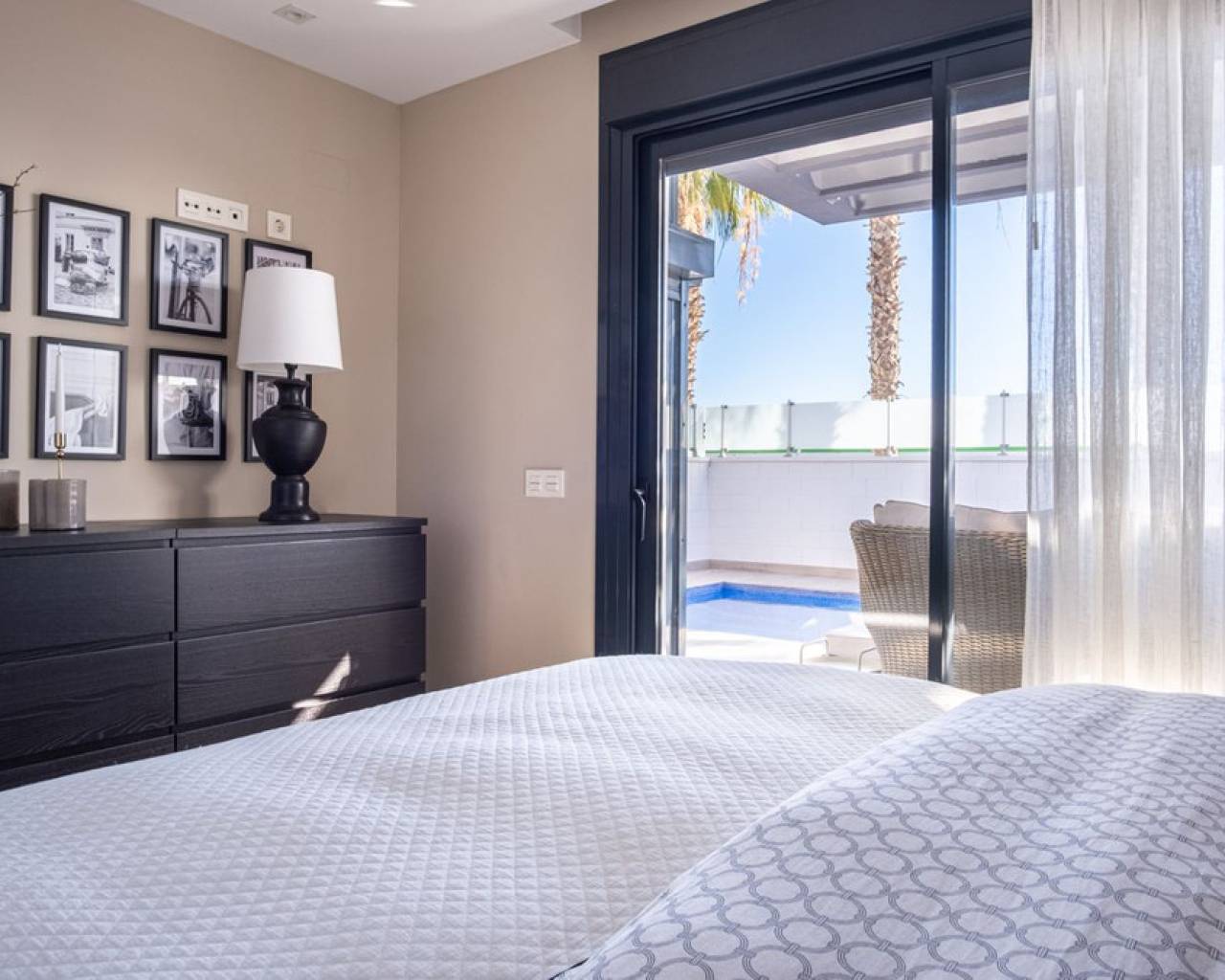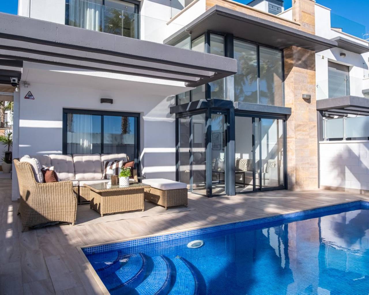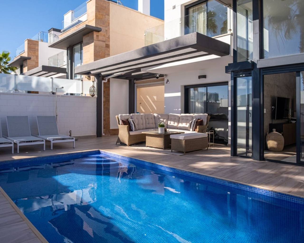 Exclusive Mediterranean Villa with Private Pool and Rooftop Solarium in Lomas de Cabo Roig Step into a world of elegance and comfort with this stunning detached villa, ideally located in the prestigious Lomas de Cabo Roig area. Combining contemporary design, sun-drenched living spaces, and a perfect Mediterranean lifestyle, this property is an exceptional choice for those seeking a permanent residence, a luxury holiday retreat, or a high-yield investment on the Costa Blanca. Light, Space and Sophistication Spanning two floors and 128 m² of thoughtfully designed interiors, this home is flooded with natural light. The open-plan lounge and dining area seamlessly connect to a fully equipped modern kitchen, creating an inviting space for everyday living or entertaining guests. The villa features three generous bedrooms, two of which enjoy luxurious en-suite bathrooms, all with built-in wardrobes and large windows that enhance the bright, airy atmosphere. Outdoor Living at Its Finest Set on a private 189 m² plot, the villa's exterior spaces are designed to elevate everyday living. Relax in your private swimming pool, host alfresco dinners on the fully tiled terrace with BBQ and lounge seating, or enjoy panoramic views from the spacious rooftop solarium — the perfect spot to soak up the sun or unwind under the stars. Every corner of the outdoor area has been crafted to maximize comfort, privacy, and enjoyment. Sunlight and Comfort Throughout the Year The villa enjoys a smart orientation, with morning sun on the southeast-facing entrance patio and afternoon light bathing the southwest-facing pool and terrace. With air conditioning and individual heating in every room, you can enjoy a perfect indoor climate year-round. Unbeatable Location Nestled in a quiet, well-established urbanisation, this villa offers both peace and convenience. The beautiful beaches of Orihuela Costa are just a short drive away, while nearby supermarkets, restaurants, shopping centres, golf courses, and schools make daily life effortless. Property Highlights: • 3 spacious bedrooms | 3 bathrooms • 128 m² built area | 189 m² private plot • Private swimming pool and rooftop solarium • Fully tiled terraces with BBQ, dining and lounge areas • Built in 2018 – excellent condition • Air conditioning and heating throughout • Quiet and exclusive setting near all amenities This villa is more than just a home — it's a lifestyle. Combining modern elegance, practical comfort, and a prime location, it represents an outstanding opportunity on the Costa Blanca. ???? Book your private viewing today and experience luxury living at its finest — properties like this are rare to find!